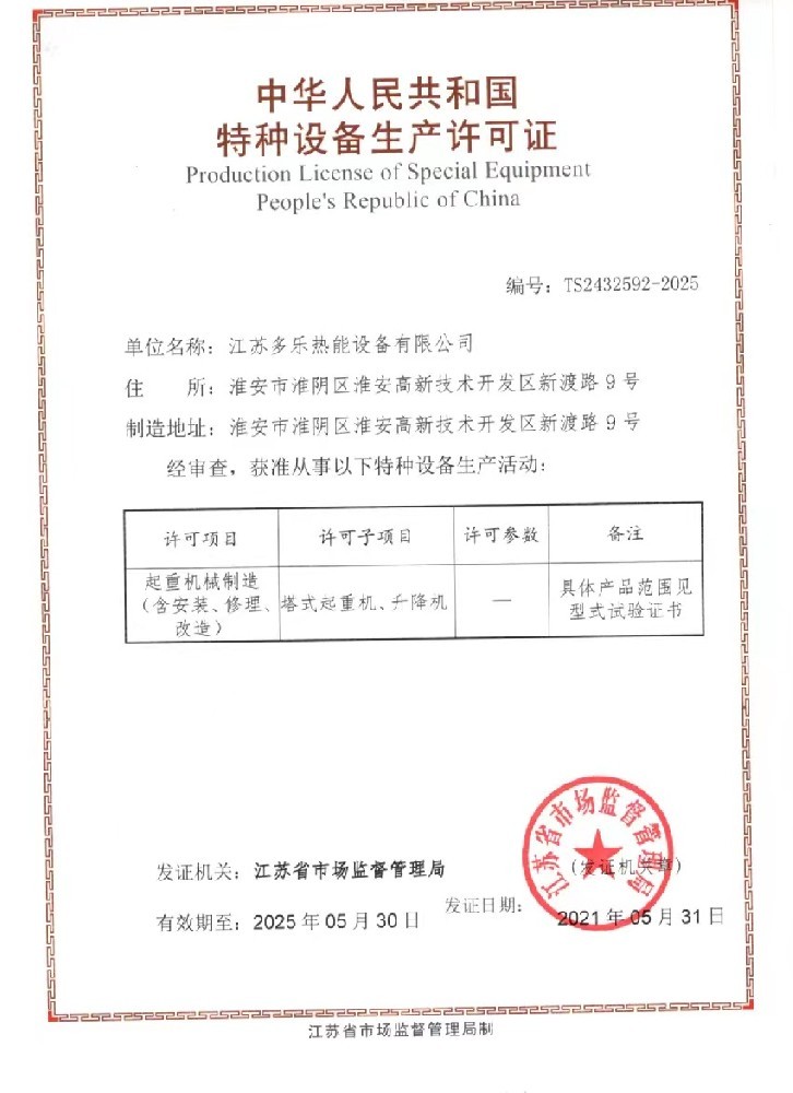 严格按照ISO9001质量标准体系生产,获得多项实用新型专利证书。